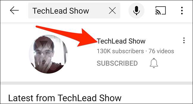 I YouTube-appen trycker du på sökrutan längst upp och skriver det kanalnamn som du vill blockera.
