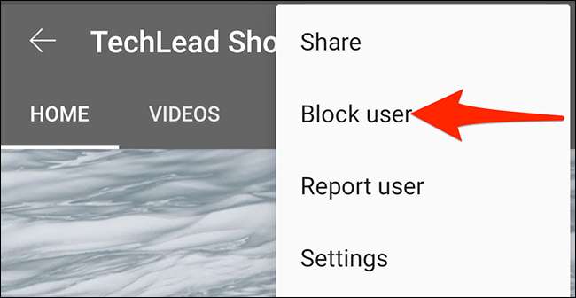 Om du vill avblockera en kanal trycker du på samma tre-dot-meny och väljer "Unblock-användare." Tryck sedan på "Unblock" i prompten som visas.