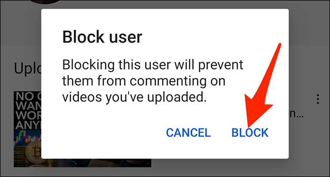 Tryck på "Block" i "Block User" -prompten som öppnas på din skärm.