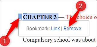 Om du inte längre vill ha bokmärkeslänken i ditt dokument, klicka på det blå bandet och klicka sedan på "Ta bort" för att ta bort länken.