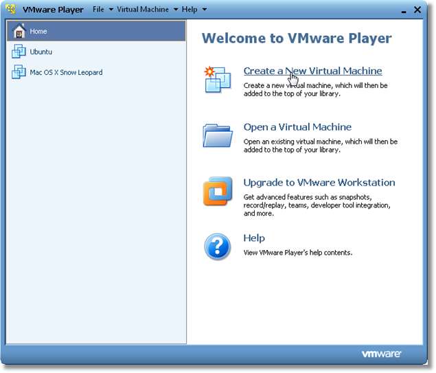 Öppna VMware, välj “Skapa en ny virtuell maskin”