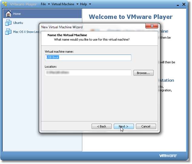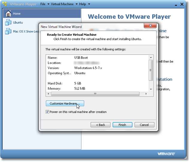 Förra veckan visade vi dig hur sätt Ubuntu på en USB-enhet i en separat partition , och vi diskuterade också arbetet med VMware Player (vår favorit VM-klient). Men har du någonsin provat att starta från en USB-enhet i VMWare? Det tillåter inte att göra det, men vi tvingar det att starta från en USB, med lite gammalt geekery.