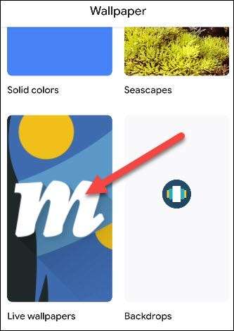 Skärmen Wallpaper Selection kommer att se annorlunda ut på lanserings- och enhetstillverkaren, men det ska finnas en "Live Wallpapers" -sektion.