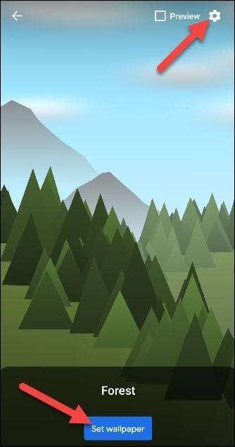 En förhandsvisning av den levande tapeten kommer att öppnas. Om det finns konfigurationsalternativ, tryck på ikonen Gear för att öppna "Inställningar" och tryck sedan på "Apply" eller "Set Wallpaper."