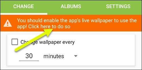 Nu är vi redo att ställa in appen som vår levande tapeter. Tryck på det orange meddelandet längst upp.