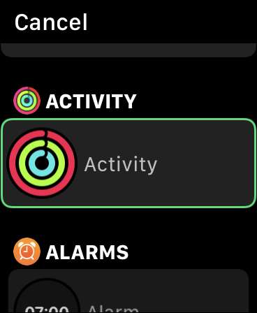 Om du vill ändra Apple Watch aktivitets mål, först lansera ”Activity” app på din klocka. Du kan göra detta antingen genom att trycka på aktivitets ring komplikation på din nuvarande urtavlan eller genom att trycka på Digital kronan och lokalisera aktivitets appen i huvudmenyn.