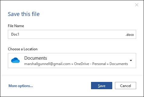 När du sparar ett nytt dokument för första gången på Office 365 eller Office 2019 frågar kontoret där du vill spara det. Som standard föreslår Office dig Spara dokument till Microsoft Onedrive Online .