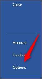 Klicka sedan på "Alternativ", som finns längst ner i den vänstra rutan.
