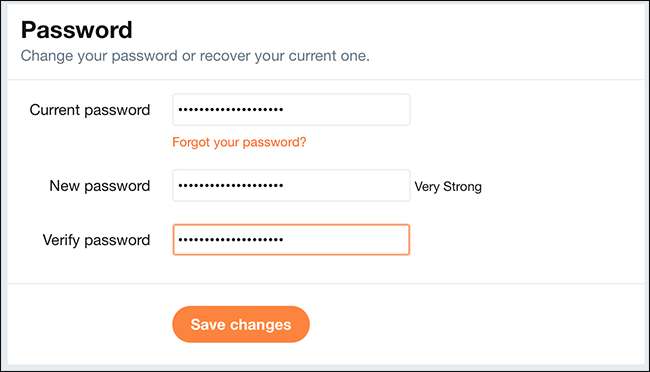 Ange ditt nuvarande lösenord och ditt nya lösenord två gånger och klicka sedan på Spara ändringar.