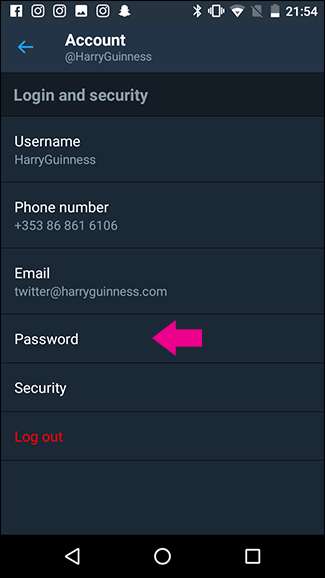 Öppna Twitter, klicka på profilikonen längst upp till höger och gå till Inställningar och sekretess> Lösenord eller gå bara direkt till www.Twitter.com/settings/password .