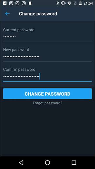 Av någon märklig anledning har Twitter i skrivande stund inget sätt för dig att ändra ditt lösenord från iOS-appen. Halva How-To Geek-personalen grävde igenom appen och försökte hitta ett sätt, men tyvärr måste du använda Safari (eller en stationär dator) och följa webbinstruktionerna ovan.