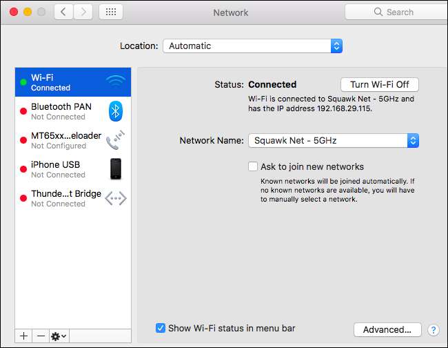 Välj den nätverksanslutning du använder i listan. Om du till exempel vill konfigurera proxyn som används när du är ansluten till Wi-Fi-nätverk, välj “Wi-Fi”. Om du vill konfigurera proxyn som används när du är ansluten till trådbundna nätverk, klicka på “Ethernet”.