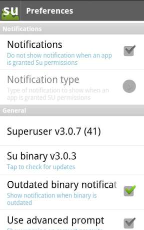 Du kommer antagligen också att vilja inaktivera SuperUser-åtkomstmeddelanden, annars ser du kontinuerligt SuperUser-aviseringen. Starta SuperUser-appen på din enhet, öppna dess meny, tryck på Inställningar och avmarkera kryssrutan Meddelanden under Meddelanden. Om du inte ser SuperUser-appen på din Android är din enhet antagligen inte rotad.
