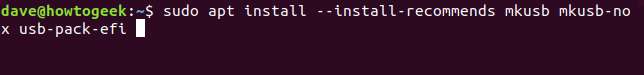 sudo apt install - installera-rekommenderar mkusb mkusb-nox usb-pack-efi
