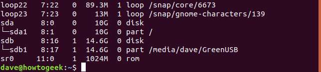 kommer att ha förändrats. USB-enheten kommer nu att listas i utgången.