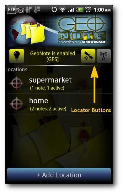 Se till att GeoNote är påslagen och att du har ställt in lämplig lokaliseringsknapp; annars meddelar GeoNote dig inte om några väntande uppgifter. Skjut nedåt i statusfältet när du ser en liten blinkande GeoNote-ikon i aktivitetsfältet för att läsa GeoNotes meddelande.