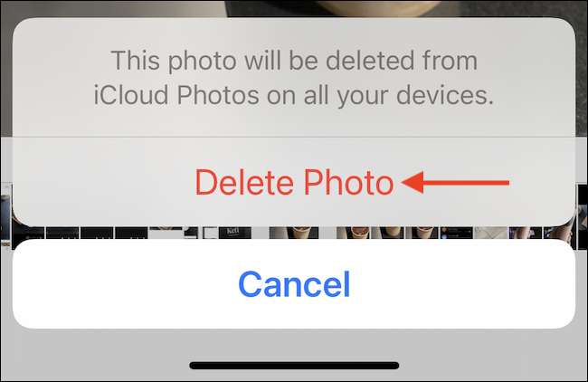 Om du är helt säker på att du vill radera dessa foton per permanent dessa foton eller videoklipp (den här åtgärden kan inte ångras.), Tryck på alternativet "Radera foton" eller "Radera videoklipp" i dialogrutan Bekräftelse.
