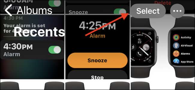 Om du vill välja flera foton eller videoklipp för att radera trycker du på knappen "Välj" längst upp på skärmen.