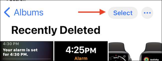 Du får se alla raderade foton och videoklipp här. Tryck på "Välj" -knappen i den övre verktygsfältet.