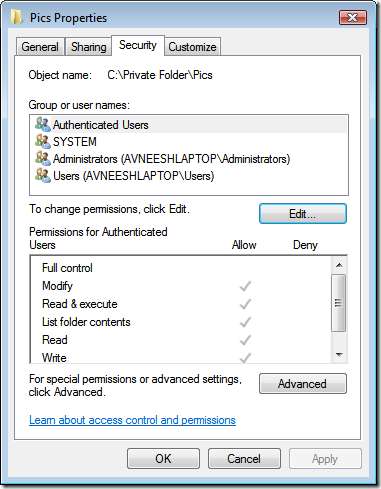 De flesta av oss använder våra datorer i en delad miljö med våra familjemedlemmar, vänner etc. Men ibland kanske vi vill ställa in några behörigheter så att vi faktiskt kan begränsa åtkomsten till vissa mappar som inte finns i Mina dokument, Mina bilder etc.