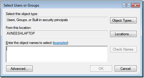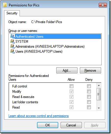 Tips: Du kan också begränsa åtkomst till alla användare i vista-typ Alla som användarnamn, men detta kommer också att inkludera ditt konto eftersom det också är en del av Alla-användargruppen.