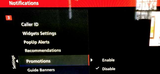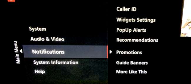 För att inaktivera annonserna, förutsatt att du inte trycker på alternativknappen när de dyker upp, går du bara till Inställningar med hjälp av inställningsknappen på din fjärrkontroll. Gå till aviseringar på höger sida.
