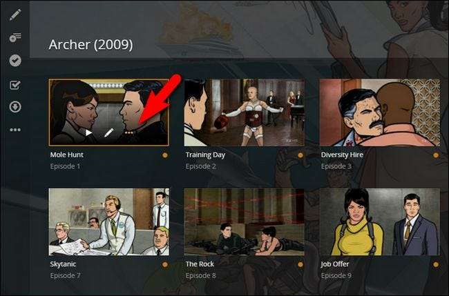 Låt oss ta en titt på hur man synkroniserar med webbgränssnittet först. Börjar på samma plats som vi gjorde i föregående avsnitt av självstudien Bågskytt Säsong 1, tryck bara på synkroniseringsikonen. Även om vi startar processen under säsong 1 kan du använda synkroniseringsfunktionen i en hel show (över flera säsonger) såväl som på enskilda medier.