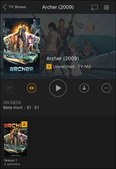 Du kan navigera runt i applikationen precis som om du var ansluten till din hemserver: dina media kommer att ha samma layout, samma menyer och samma metadata med den lilla (men viktiga) skillnaden att den lagras direkt på din enhet istället för servern.