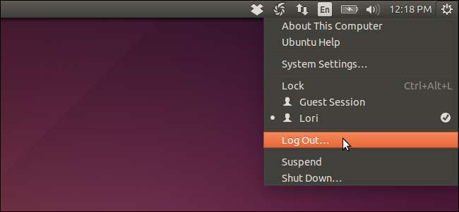 Du måste logga ut för att denna ändring ska träda i kraft. Klicka på kugghjulsikonen längst upp till höger på skärmen, på den övre panelen och välj "Logga ut" i rullgardinsmenyn.