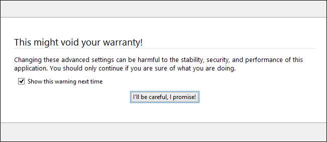 Du kommer att sarkastiskt varnas för att du ska upphäva garantin, klicka bara på "Jag ska vara försiktig, jag lovar!" för att gå vidare.