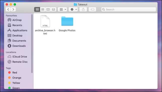 Det finns två sätt att utforska det nedladdade arkivet. Du kan antingen öppna dokumentet "Archive_Browser.html" för att bläddra i biblioteket från en anpassad webbapp i en webbläsare eller visa varje foto eller videofil separat från mappen "Google Photoses".