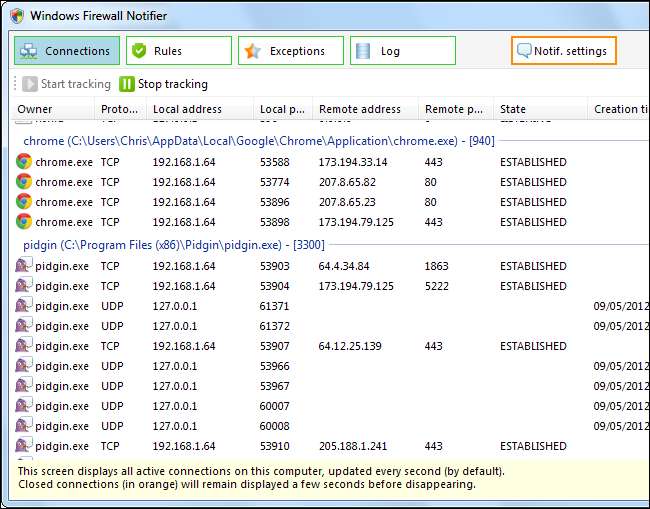 Om du letar efter en lätt, gratis applikation som lägger till några funktioner som saknas i den inbyggda brandväggen, är Windows Firewall Notifier en bra satsning.