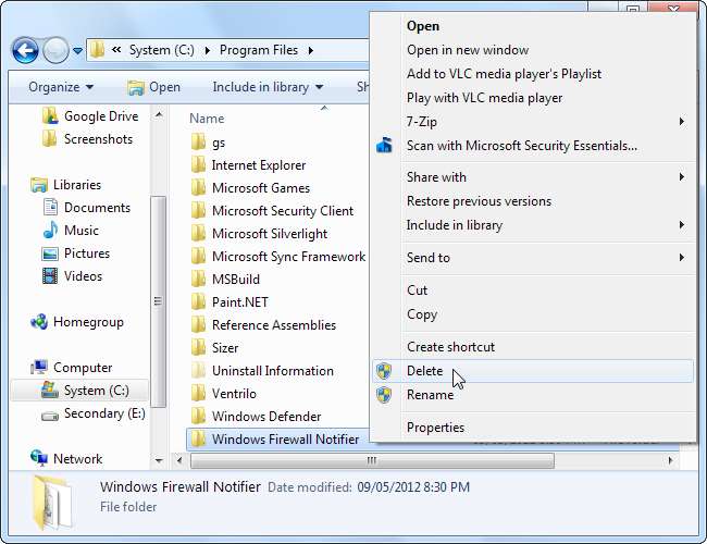 När du har inaktiverat aviseringarna kan du stänga konsolfönstret och radera mappen Windows Firewall Notifier.