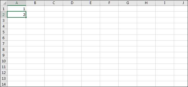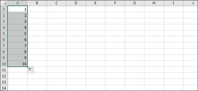 Auto Fill fungerar lite som blixtfyllning, även om det är bättre lämpat för uppgifter som involverar många celler. Det är också bättre för celler som har ett ännu mer uppenbart mönster, till exempel siffror, till exempel. För att se hur det fungerar, låt oss skriva in några få siffror.