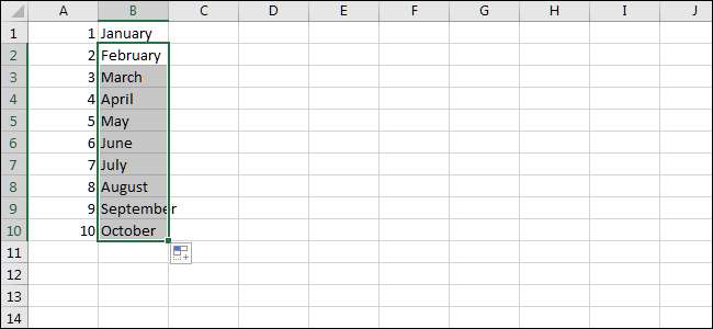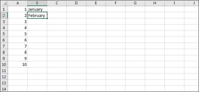 Men det fungerar inte bara för siffror. Auto Fill är bra för alla slags mönster, som dagar och månader, till exempel. Låt oss skriva några för att komma igång.