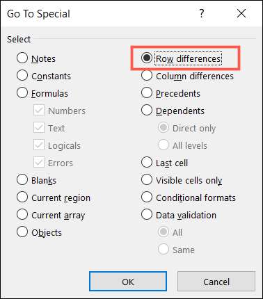 I fönstret som dyker upp, välj "radskillnader" och klicka på "OK."