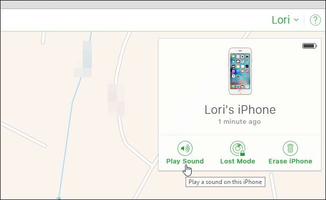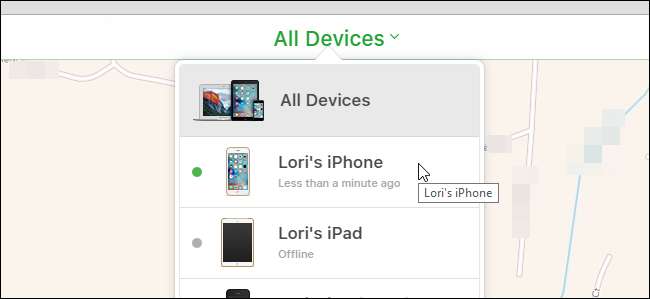 När du väljer din enhet från "Alla enheter" -menyn visas också en popup ovanför din telefons plats på kartan.