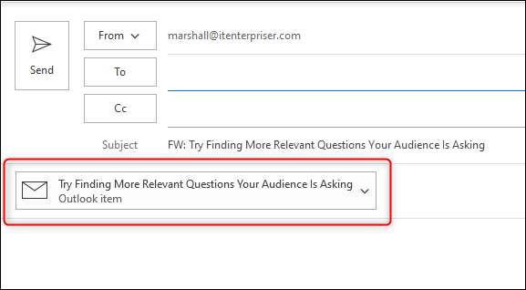 Om du vill att Microsoft Outlook ska bifoga ett mail till ett nytt e-postmeddelande som standard när du klickar på "Framåt" -knappen i ett e-postmeddelande, är det så enkelt som att du vrider inställningen.