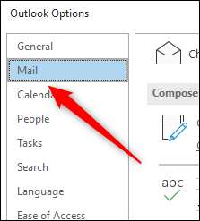 Fönstret "Outlook Options" visas. Här klickar du på fliken "Mail".