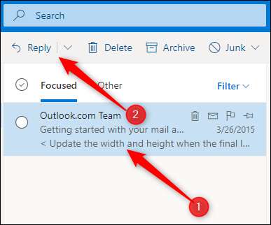 Alternativt, om du vill Svara på ett mail Med ett annat e-postmeddelande som en bilaga, klicka på e-postmeddelandet från e-postlistan du vill svara på och klicka sedan på "Svara" -knappen.