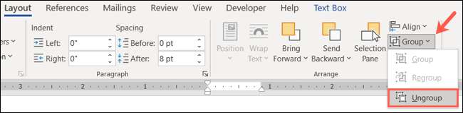 Välj gruppen och gå tillbaka till fliken Layout. Klicka på "Grupp" och välj "Ungroup".