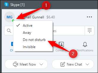 I Skype, är processen likartad. Klicka på ikonen för status (grön, gul eller röd prick) och klicka sedan på ”Stör ej” från menyn. Du ser ett meddelande om att du inte kommer att få meddelanden om inkommande meddelanden. Klicka på "OK".