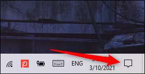 För att snabbt stänga av allt systemmeddelanden i Windows 10, klicka på ikonen Meddelanden till höger om verktygsfältet i Windows.