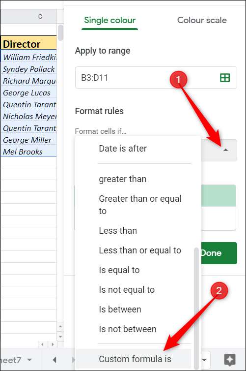 När du har valt hur du vill att raderna ska visas när din formel hittar en matchning klickar du på "Klar". Du kan stänga panelen eller skapa en annan regel för att tillämpa villkorlig formatering också.