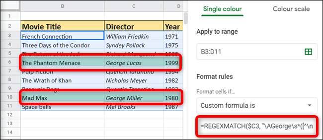 = REGEXMATCH ($ C3, "\ AGeorge \ s * ([^\n\r] *)")