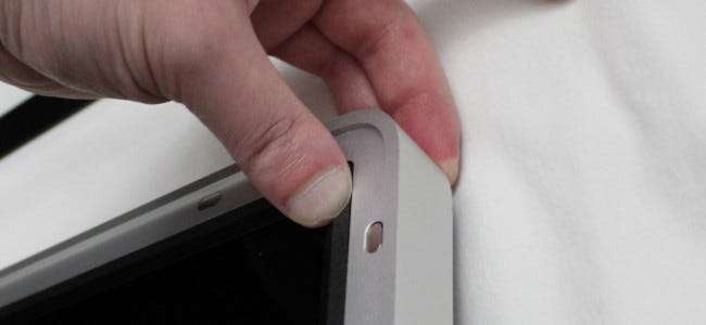 Ta sedan dina sugkoppar och placera dem i motsatta hörn av skärmen. Glaset hålls helt enkelt fast av magneter, så allt du behöver göra är att lyfta rakt upp och glaspanelen kommer att raka av.