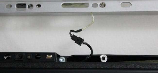 Sätt sedan tillbaka bildskärmskabeln och skruva in de två T6 Torx-skruvarna.