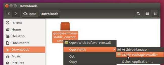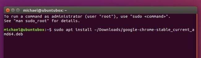 För ett mer specifikt exempel, låt oss säga att du laddade ner .deb för Google Chrome till katalogen Nedladdningar i din / hemmapp. Kör följande kommando: