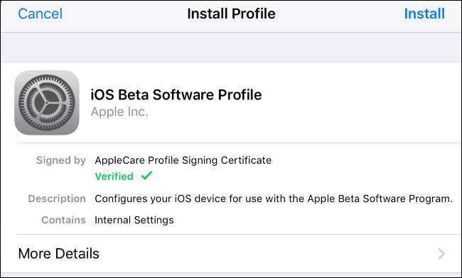 Obs! Det här installerar inte iOS 11, det uppdaterar bara profilen på din telefon så att du är berättigad till OTA-uppdateringen.