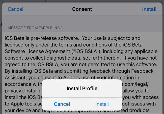 Du uppmanas att installera profilen. Tryck på "Installera" i det övre högra hörnet.